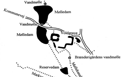 Renæssancens ”vandingeniører” slipper ikke vandet fri endnu. Omkring 200 meter nord for møllen er rejst endnu en dæmning med et gennembrud midt for. Dette meget store anlægsarbejde er lidt af en gåde. Der kan være tale om endnu en vandmølle, men i så fald var den væk før 1790’erne. Det kan også være en dæmning med hvilken, man i ufredstider kunne oversvømme hele området og blokere adgangen til Brejninggaard fra nord.