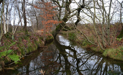 Vandet løber nu gennem en gravet slugt mellem store træer umiddelbart syd for Brejninggaards hovedbygninger. Mellem de gamle ege- og bøgetræer er det svært at tro, man befinder sig i det engang så træfattige Vestjylland.