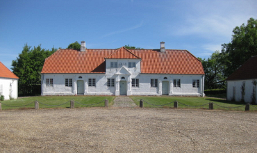 Stuehuset er grundmuret og fremstår hvidpudset med rødt tag. Hovedfløjen, der ligger mod øst til haven, har to korte sidefløje i to etager.