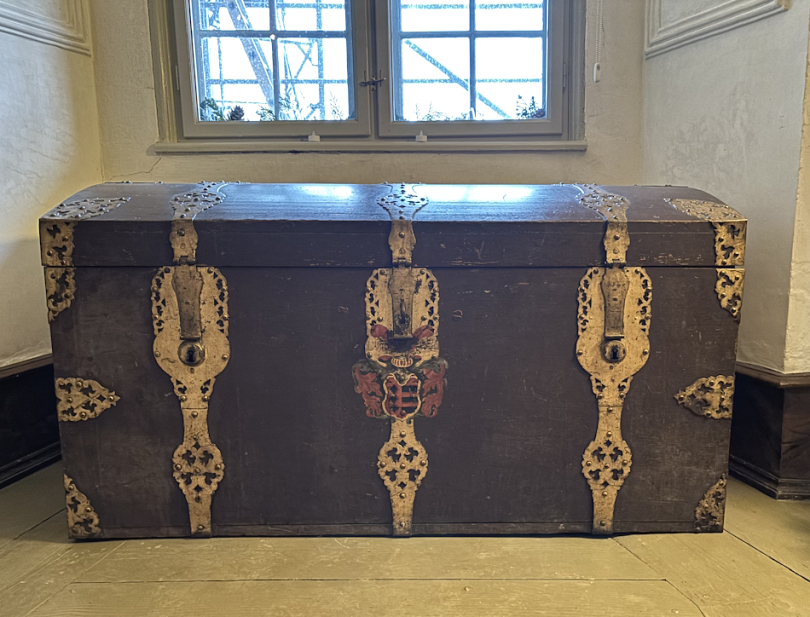 I riddersalen på Gammel Estrup Danmarks Herregårdsmuseum står to smukke egetræskister med guldbeslag. Inskriptionen L.V.T. henviser til, at de har tilhørt Lucie von Thienen (1717-1743), som medbragte brudekisterne, da hun i 1740 indgik ægteskab med Jørgen Scheel (1718 -1786), der ejede herregården Gammel Estrup.