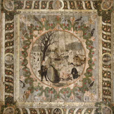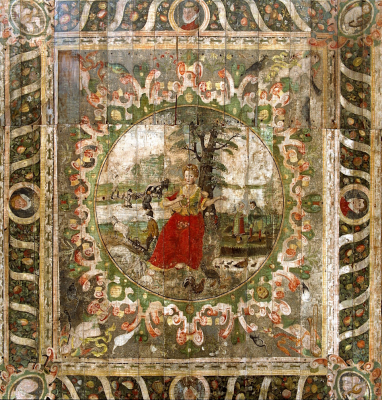 At skildringen af de fire årstider alle samler sig om store centrale kvindefigurer, hvoraf vinteren tydeligvis er en moderskikkelse, gør det fristende at se loftet som en hyldest til husets unge frue. Nok skal de respektive kvindefigurer forstås som personifikationer af de fire årstider, men det hindrer ikke, at de samtidig skal opfattes som slags allegorisk fremstilling af husets frue – en hyldest til adelsfruens dyder … skønhed, værdighed såvel som moderlige omsorg. (Det er værd at bemærke, at det på der på dette tidspunkt ikke findes nogen konvention for skildringer af de 4 årstider opbygget omkring centrale kvindefigurer).