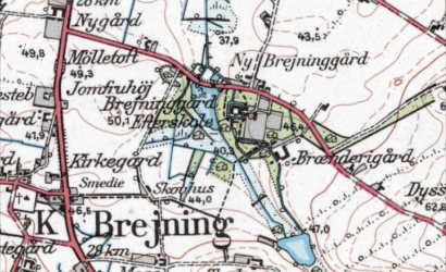 Vi springer en generation frem i tiden og tager et kig på Brejninggaard på kaptajn J.H. Mansas kort: