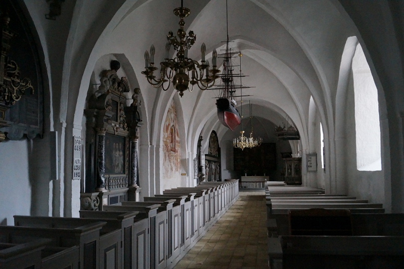 Hornslet kirke set fra syd. Rosenkrantz’erne på Rosenholm har i flere omgange bygget på kirken. Mest omfattende var Jørgen Rosenkrantz’ udvidelse af kirken i 1500-tallet. Han forlængede kirken og opførte tårnet og kapellet. Alt sammen for at få plads til de mange adelige gravsten og herskabsstole, som der efter Rosenkrantz’ernes overtagelse af kirken nu skulle være plads til. Kapellet til højre skulle huse Jørgen Rosenkrantz’ nærmeste familie, mens våbenhuset længst til venstre blev bygget af Holger Rosenkrantz og blev udstyret med et bibliotek til kirkens præster. Biblioteket er nu på Rosenholm. Foto: Wikimedia Commons.