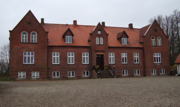 Hovedbygningen er et anseeligt, hvidkalket bygværk i to etager opført i grundmur.