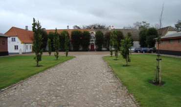 Gårdens have er omgivet af en jordvold beplantet med linde- og elmetræer.
