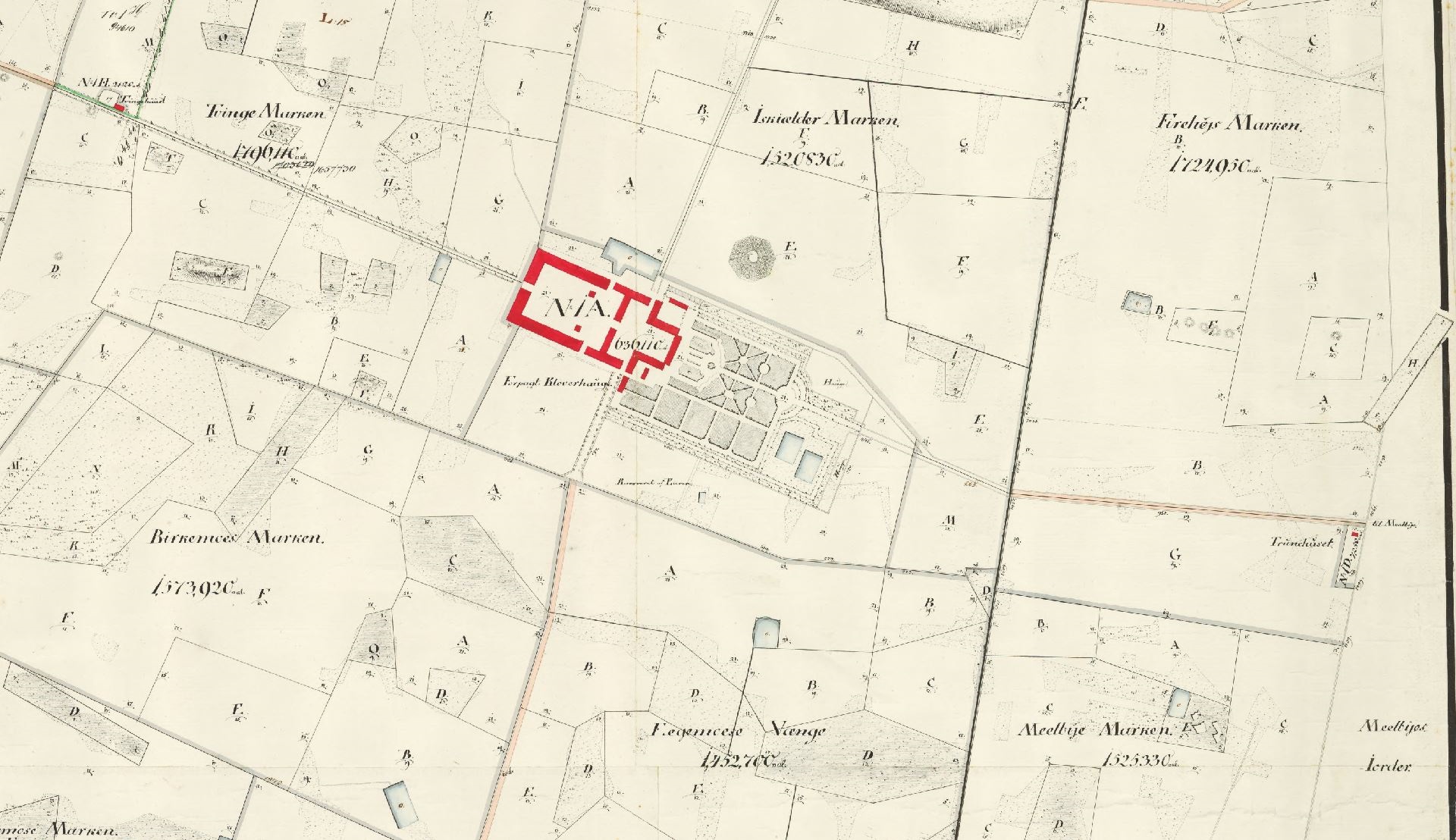 Matrikelkort over Lerchenborg, 1860. Billede: Geodatastyrelsen.