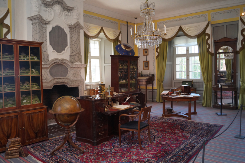 Dansk Center for Herregårdsforsknings projekter er med til at danne grundlag for udstillinger og øvrig formidling på Gammel Estrup Danmarks Herregårdsmuseum. Foto: Grevens arbejdsværelse, Gammel Estrup