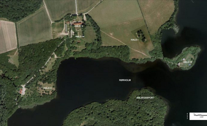 Dette luftfoto viser en oversigt over de fem borg-, vold- og herregårdsanlæg som gennem tiden lå ved Hald Sø. De fem anlæg kaldes traditionelt Hald I-V. Den kronologiske rækkefølge på anlæggene er dog II-III-I-IV-V. Arkæologiske undersøgelser i området i de senere år har betydet, at vi er blevet meget klogere i forhold til de fem anlæg. Foto: Fra antologien Castles at War artikel af Jesper Hjermind.