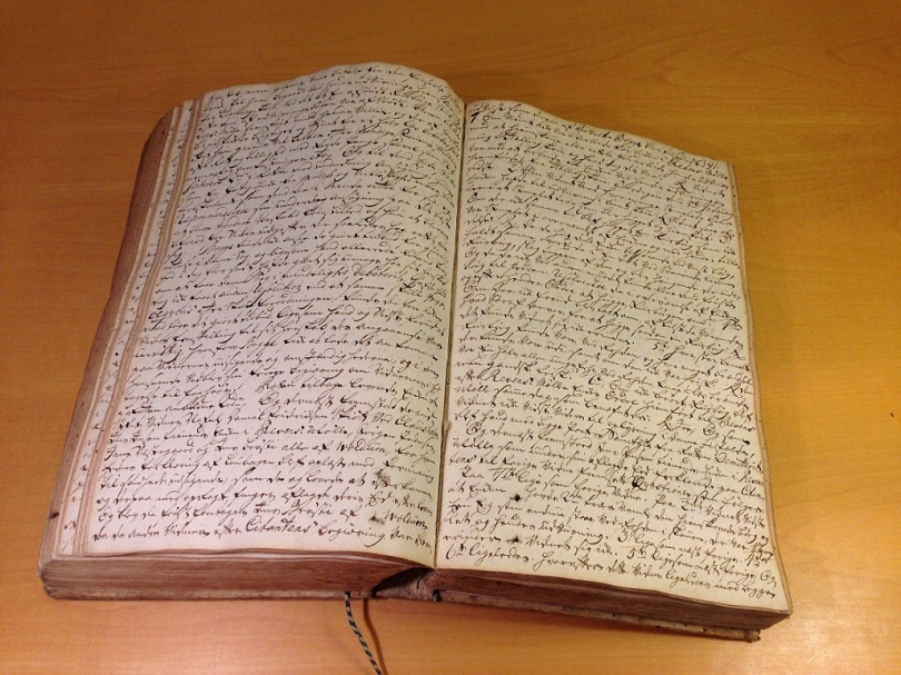 Opslået tingbog fra Clausholm birkeret. Tingbogen fra Clausholm birkeret i årene 1752-60 rummer omkring 1000 tætskrevne sider. På den opslåede side kan man følge begivenhederne under skovhugstsagen mod møllerenken Kiedde M. Huusher fra Revens Mølle ved Voldum. På siderne her beskrives bl.a. det dramatiske optrin, hvor ridefogeden afviste enkens tilbud om at betale for det ulovligt skovede træ. At sagen blev ført for retten er bemærkelsesværdigt, idet godsejerne på Clausholm havde ret til at opkræve deres undergivnes bøder for brud på straffelovgivningen, uden at der blev fældet dom. Herskabets konflikt med møllerenken var formentlig så optrappet, at man ønskede at anvende birkeretten til at statuere et eksempel. Clausholm birkedommer, Rigsarkivet, Viborg. Foto: Dorte Kook Lyngholm.