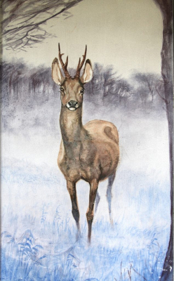 I spisestuen er der freskomalerier med jagtmotiver, og på modsatte endevæg fra de store panoramavinduer en gengivelse af udsigten. På denne måde kunne de gæster, der sad med ryggen til vinduerne, også kunne nyde skovene, kysten, vandet og Kalø slotsruin.
