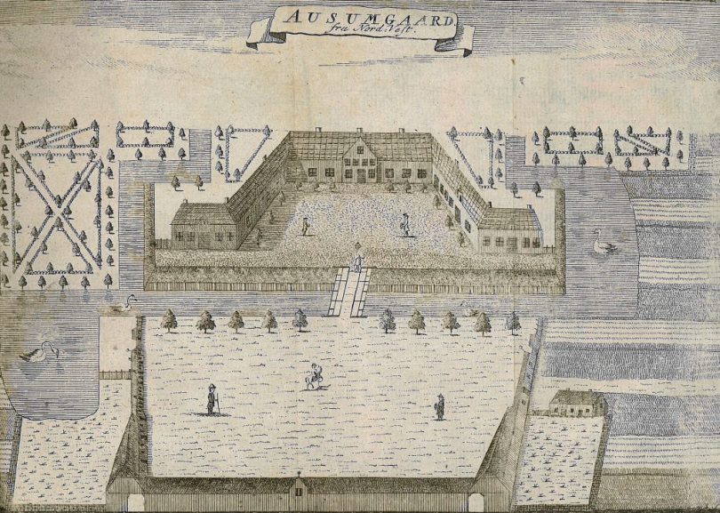 I 1710 blev Ausumgaard solgt til Hjermpræsten, magister Jens Jermiin. Jermiin omlagde gården til herregård og kompletterede den. Det vil sige, at godset kom til at omfatte mere end 200 tdr. hartkorn fæstegårde. Komplette herregårde var skattefri. I 1710 var Ausumgaard dog fortsat en mindre herregård med under 300 tdr. hartkorn samlet gods.