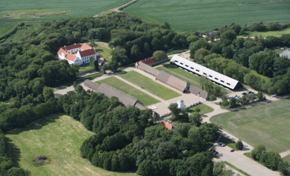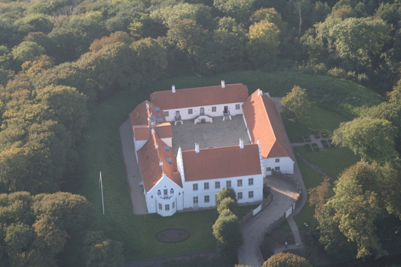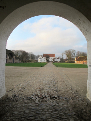 Nørre Vosborgs diger, volde og voldgrave er fra 1570’erne, da Predbjørn Gyldenstjerne etablerede sin nye herregård på dette sted. Bag den høje vold lå bygningerne godt beskyttet mod vind og vejr. Det gør de stadig, som man kan se på billedet. Oprindelig lå anlægget uden bevoksning, men i dag er der her en frodig og stemningsfuld, skovagtig park. Set mod nordøst. Foto: Helle Henningsen.